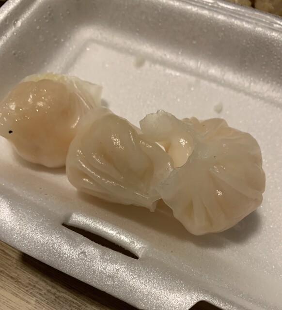 実は海老の蒸し餃子は海老の独特な臭みが出る点があまり得意ではなかったのですが、ヴィクターさんの蒸し海老餃子は嫌な香りが全くありません。サイズも平均的な海老蒸し餃子よりも1.5倍くらいありまして、中に入っている海老の塊もデカい!たまらないブリブリ食感と食べ応えです。