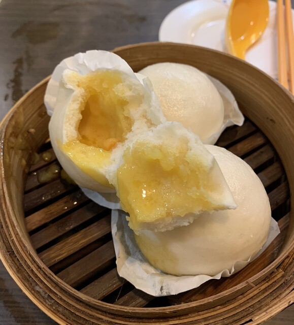 シンガポールで根強い人気の黄身クリーム饅で甘いデザートです。不注意に噛り付くとトロミがなくサラサラとした熱々の黄身クリームがブシャッと飛び出てくるのでご注意を。