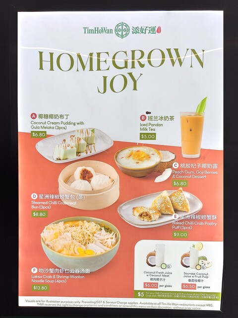 シンガポール限定メニューとして、チリクラブまんや、ラクサワンタン麺、ココナッツプリンなど、ローカルフードアレンジの點心・料理もあり。