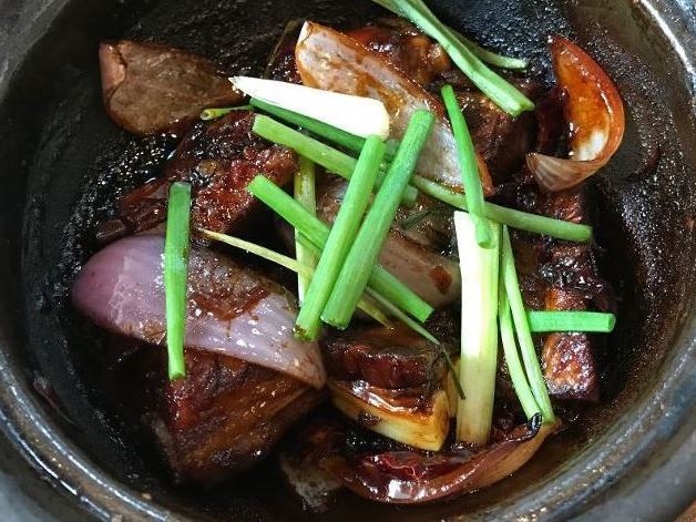 漢方ハーブ入りグレービーソースで煮からめてありピリ甘辛。