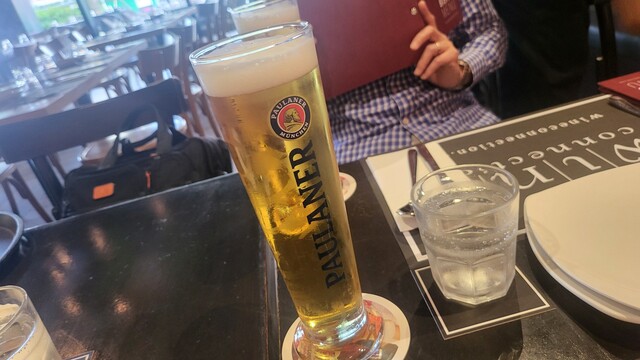 帰国前に事務所の下で軽くビールとシャブリを楽しんだ。