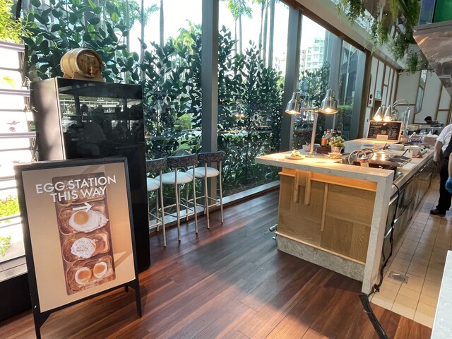 朝からお酒がたしなめるコーナーだったり、定番の卵料理作ってくれるカウンターだったり、