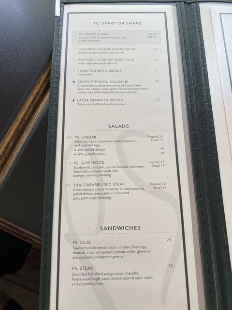 朝食でお腹いっぱいになったから空腹じゃなかったけど、「PS. Burger」(32 SGD)を選んだ妻に触発されて「PS Club」(28 SGD )を選ぶ。