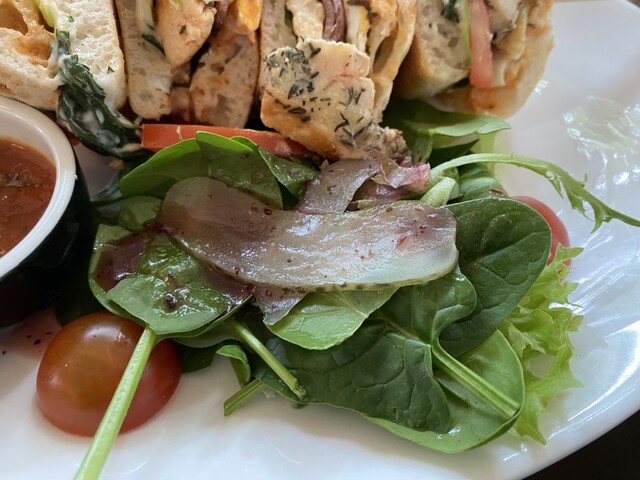 ところが道半ばで、まだ歩いて1km以上あることに気づき、心が折れて近場のカフェでランチすることにする。