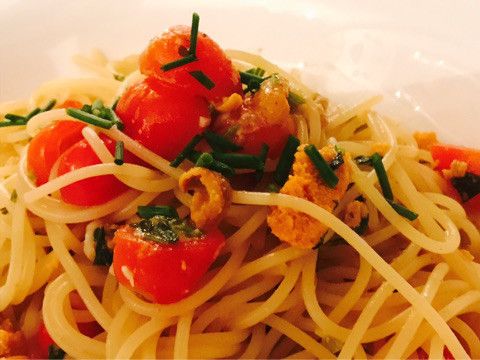 雲丹とトマトが絡み合った、白ワインベースの美味しいパスタでした。