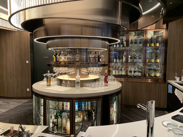 バーカウンターは婉曲型の12席へと大幅拡張。シャンパンは...