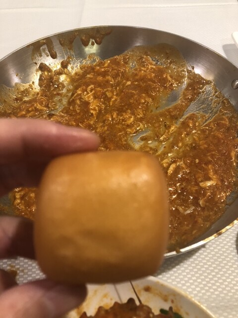 ちなみに、予習していたマントウが無かったので頼むと個数聞かれて2個もらいました。値段に上乗せ無いから付いているんだと思うけど、言わなかったら来ないのか、最初注文時に聞かれて訳分からずノーと言ったのかも。マントウはちょっと甘めの揚げパンです。ただ、そんなに油っこくなく、チリソースに漬けると確かにこれも美味い、ちゃんともらって良かったです。