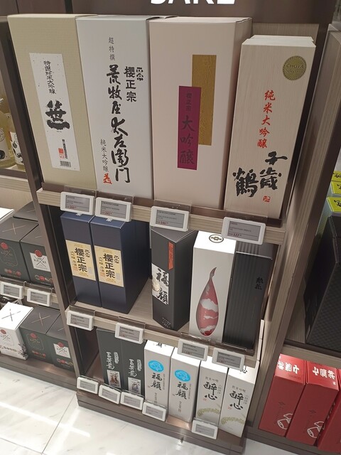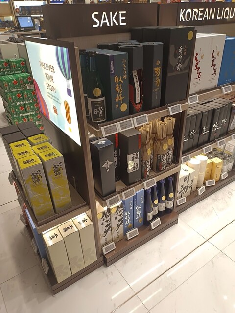 途中、免税店のSAKE売り場を覗いたけど中々に惹かれない銘柄たち。。