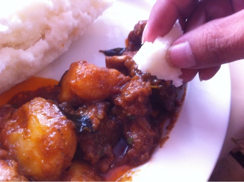 カレーの横に見える白い物体はPap(パップ)といってトウモロコシから作った主食。