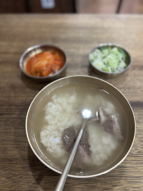 オーナーが守る昔ながらの技法で作る澄んだスープがソウル式コムタンだそう。