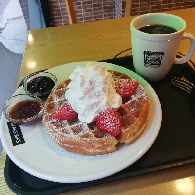 イチゴののったベルギーワッフルとアメリカーノを注文。