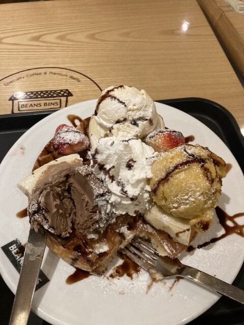 なんでも注文が入ってから焼きあげてくれるワッフルが食べれるとのこと‼