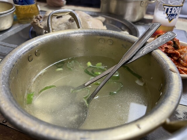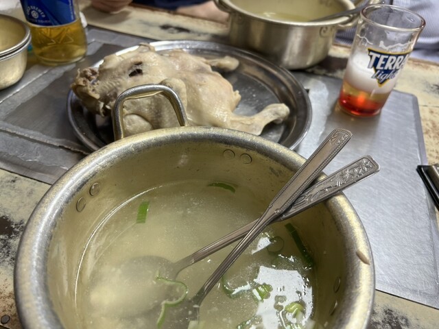 韓国式のうどんカルグクスや、鶏の水炊きが食べられる1968年創業のお店。映画俳優や監督、ミュージシャンなどにも訪れる地元有名店です。