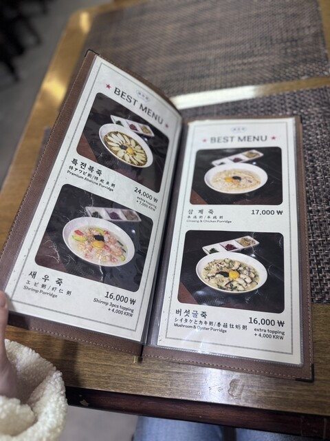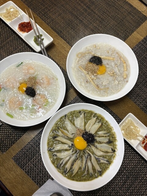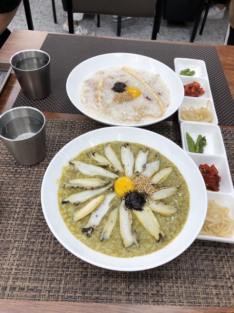 日本の旅行雑誌やSNSで頻繁に紹介されるソウル特別市の人気お粥店。朝8時台にはすでに大行列。本店に並んでいましたが、店員さんの案内ですぐそばの2号店に並びました。