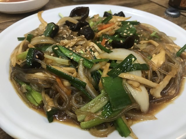 海鮮チヂミ15,000₩とチャプチェを注文。