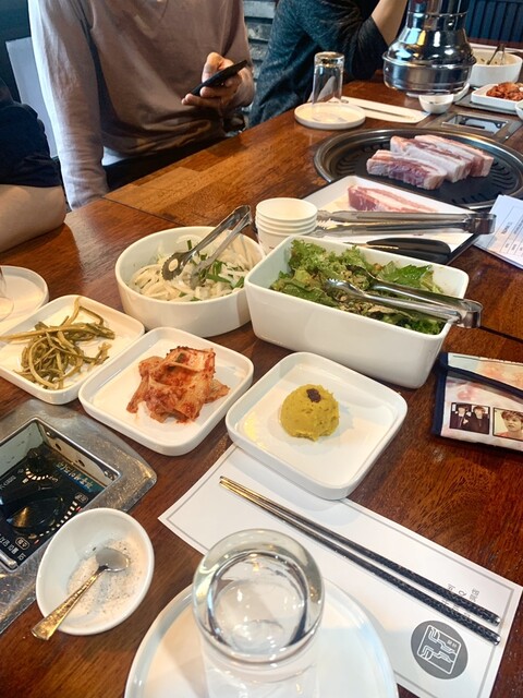 金塊のような豚バラブロックを店員が焼きからカットまでオペレーションしてくれる。