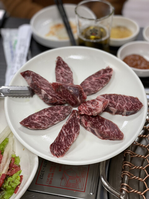 韓国出張の際に通訳さんに連れて行ってもらいました。宿泊先から近かったので便利でした。はじめての韓国料理だったので注文は通訳さんにお任せで。韓国料理らしく小皿がたくさんでてきて、お肉とお先を楽しむ感じで...