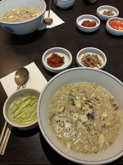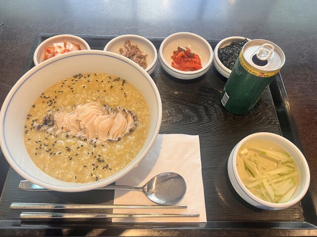 朝から贅沢。しかし美味すぎるので仕方ない。韓国に行くと毎回行くお店。生鮑のお粥!