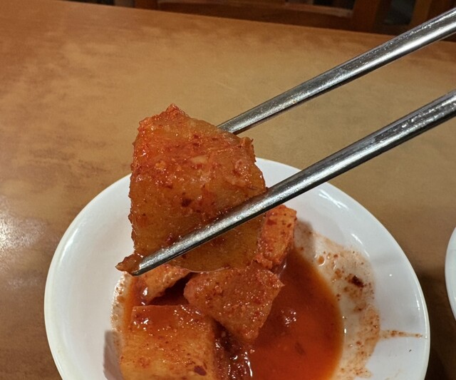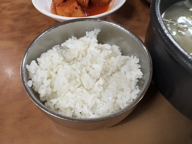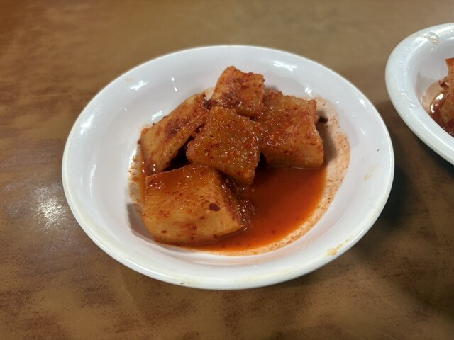 ご飯とカクテキ、白菜キムチが着いてきます。