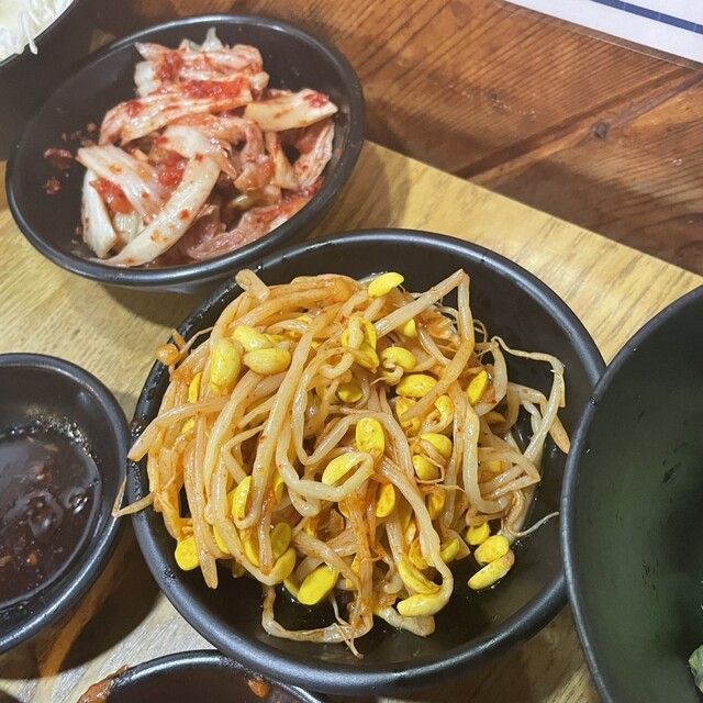 2種類の肉、レタス、キムチ、ナムル、ネギ、味噌チゲが食べ放題でしかも結構ちゃ...