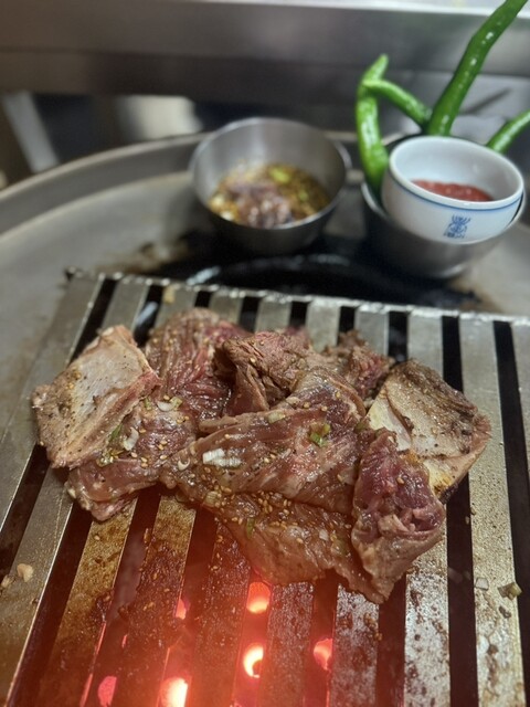 席に立つと注文しなくても人数分の『骨付き牛カルビ』がきます。
