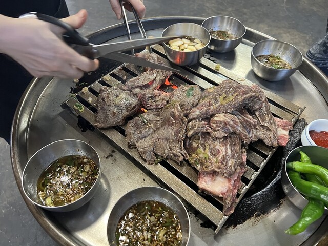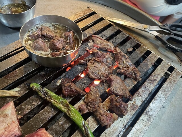18,000ウォンでカルビと青唐辛子が出てきて、