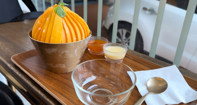 写真映え抜群 練乳 みつ豆 マンゴーペイストがついてきましたが