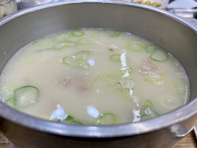 ソルロンタンは本来牛骨スープ料理だが、この店ではおかゆのようにまろやかで滋味深い味わい一杯をいただける。あっさりした中にコクがあるスープが特徴で、辛い料理が苦手な人や旅行で胃腸が疲れ気味の人にもおすすめ。