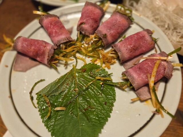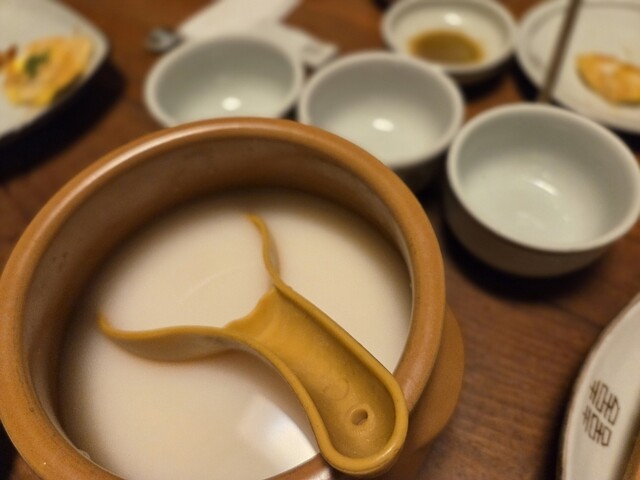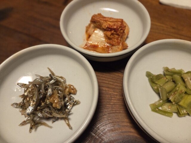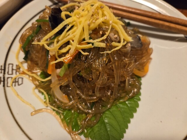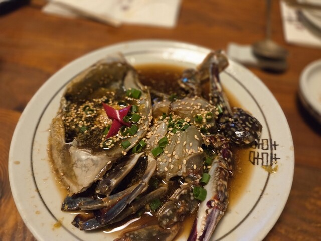 韓国のちょっと高級な感じの料理をコースで出すお店で、最初の白菜の水キムチからアワビ粥、ヒラメの刺身、チャプチェ、ローストビーフの野菜巻き、アワビ(トコブシ?)、白身魚とカボチャ等のジョン、韓牛焼き、ケジャン等量も満足でした。