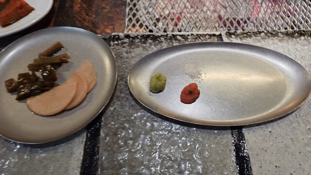 肉は塩でいただくのがおすすめです ワサビとメンタイコ