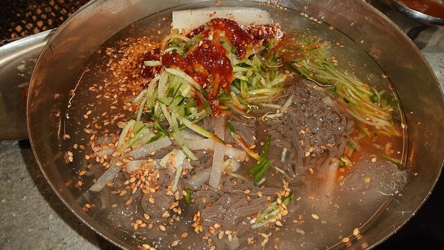 冷麺 これで1人前というくらいデカイのよ これで7000₩って安すぎです