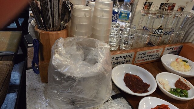 キムチ、薬味、おしぼり、箸はすでにテーブル上にセット済み