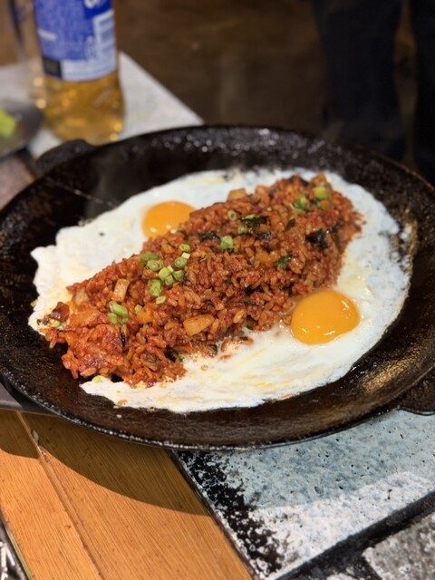 日本語ペラペラのお兄さんが、おすすめメニューは、シンプルな黒豚の塩焼き、コチュジャン焼きと、やきめしやと教えてくれたのでそれにした。