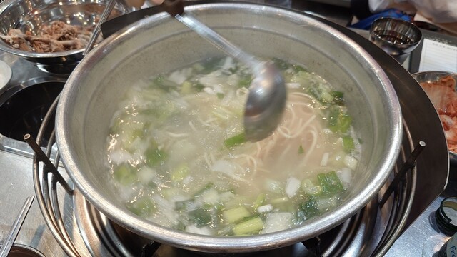 他の韓国人お客さんはどのように作って食べてるのかなぁ?キョロキョロしてると・・・。