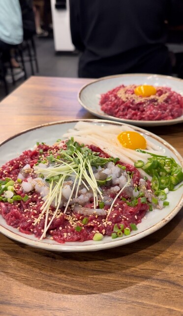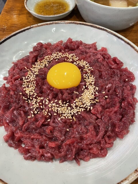ユッケが安くて美味しい!金曜日の夕方ぐらいに行きました。お昼には遅くて夜には早いぐらいの時間でしたが、お店は人で賑わっていました。席に座るとスープが出てきて、このスープも美味しかったです。タッチパネル...