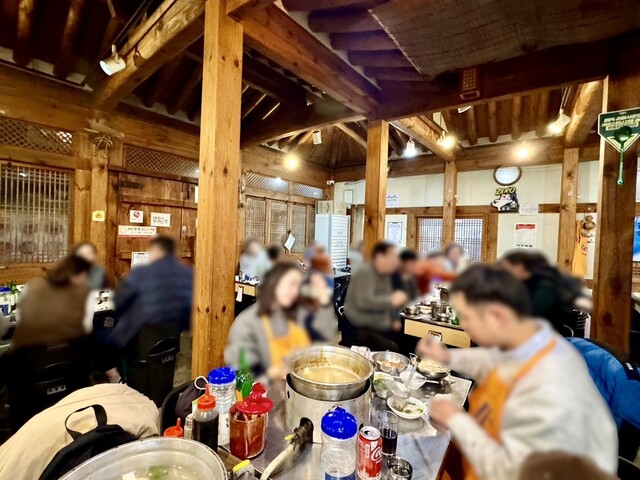 本店の方は昔ながらの食堂の雰囲気の旧館と、木造作りのオシャレな韓屋(ハノッ)スタイルの新館の2つの店舗が隣合っていて、店内で繋がっている。今回は新館の方に案内された。店員さんは日本語は基本的に通じない。