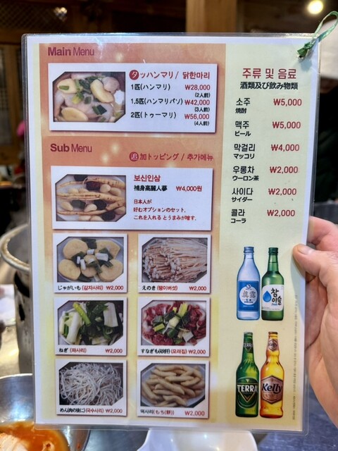 もうすぐ夜22:00になるタイミングで大行列の「陳玉華ハルメ元祖タッカンマリ」の順番待ちをする気力はなかったので、比較的並びが少なかったこちらの「東大門明洞タッカンマリ」へ。