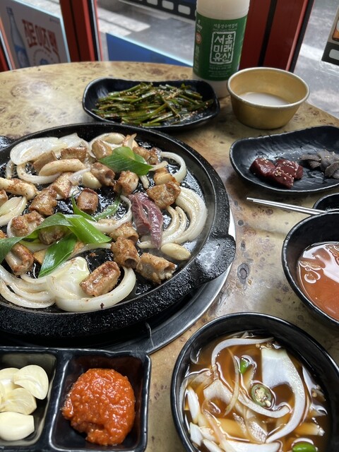 キャノンデールのB級食べ歩記: 冬のソウル三泊四日B級グルメ旅⑦ 東大門路地裏の「プルタヌンコプチャン」で、市場で働くジモティに混じってセンマッコリを呷りながらホルモン焼き