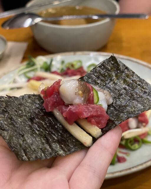 口の中でくっついてきて、食感もいいし、ユッケの甘さと卵黄とも絡み合ってよかったです。