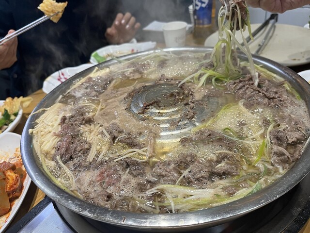 鍋でグツグツ韓国styleのプルコギ