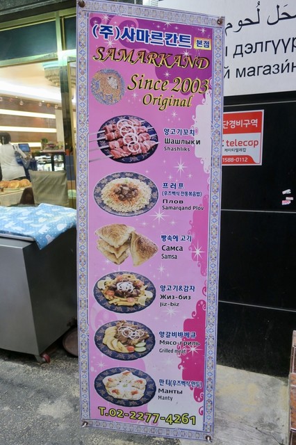 隣の「Samarkand City」と比べるとメニューも値段も全く同じように見えるので姉妹店なのかな。でも、隣のお店の方が内装がもっと本格的でエキゾチックだったし、人参サラダも無料サービスがあるし、どちらかと言えば隣の方が良いかな。そういえば、このお店のある通り沿いにもう1軒「SAMARKAND AFROSIOB(サマルカンド・アフラシヤブ)」というウズベキスタン料理店もあった。全部姉妹店なのだろうか。