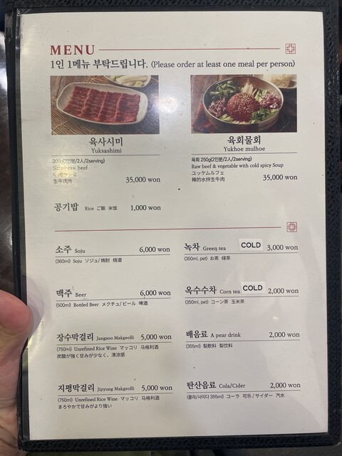 ユッケビビンバも生レバーも、それぞれ日本円でW21,000〜W35,000ほど。