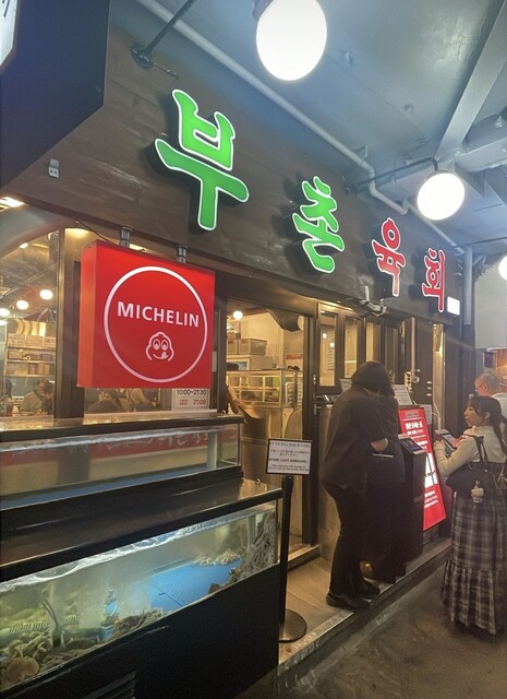 その名も「プチョンユッケ本店」。ミシュランガイドに毎年掲載されるほどの人気で、夜になると必ず行列ができる名店です。