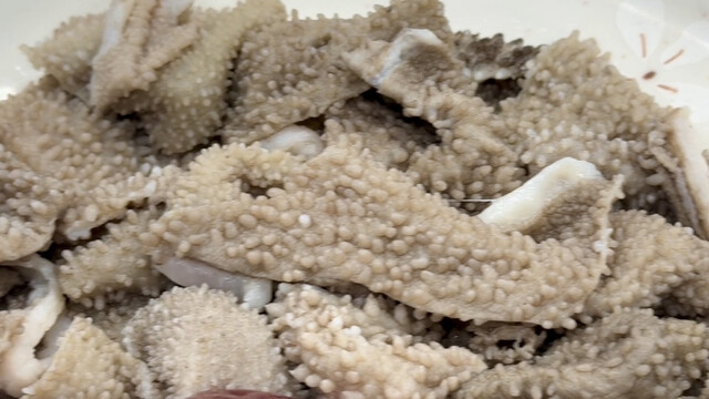 サクッとした歯応えのある食感は楽しめたものの、ややどろっとしていたし、少し血生臭さを感じた。