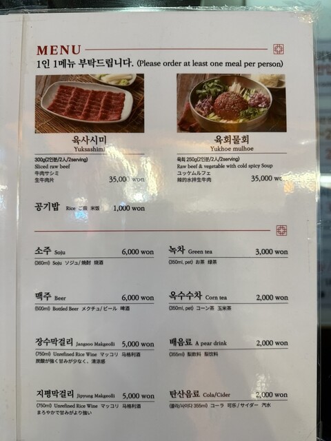 1人1オーダー制なので、ユッケとレバ刺しをオーダーしました。