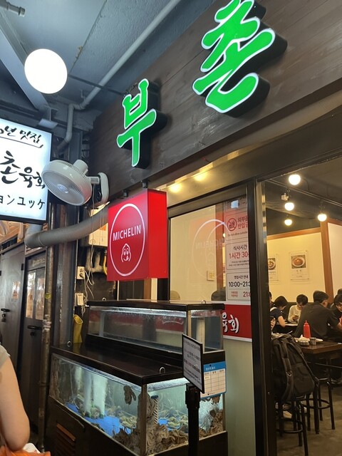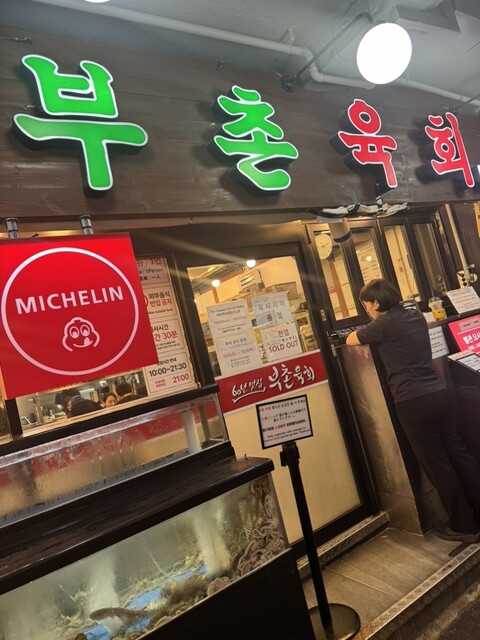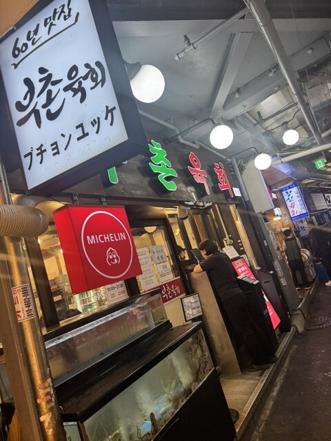 その名も「プチョンユッケ本店」。ミシュランガイドに毎年掲載されるほどの人気で、夜になると必ず行列ができる名店です。