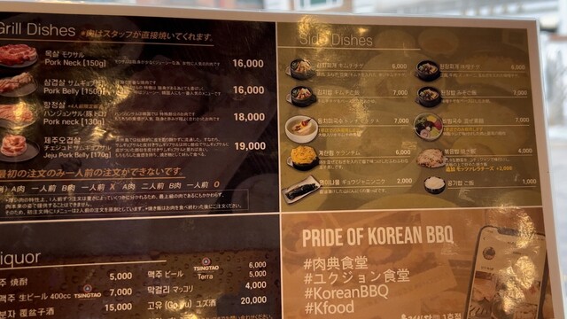 サムギョプサル/2 モクサル/2 チヂミ/1テラ/2
