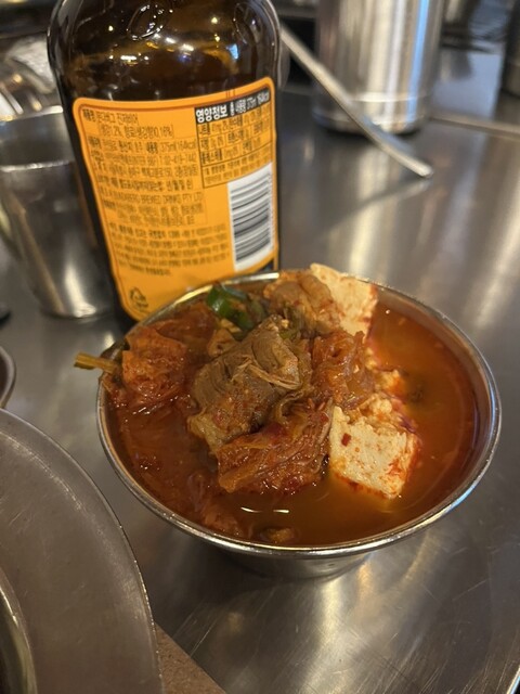 チゲもほろほろのお肉がたっぷり入ってて、酸っぱくて辛くて最高、シメのラーメンも残さずペロリ。隣の方たちは、辛い辛いってラーメンは残してはりました。