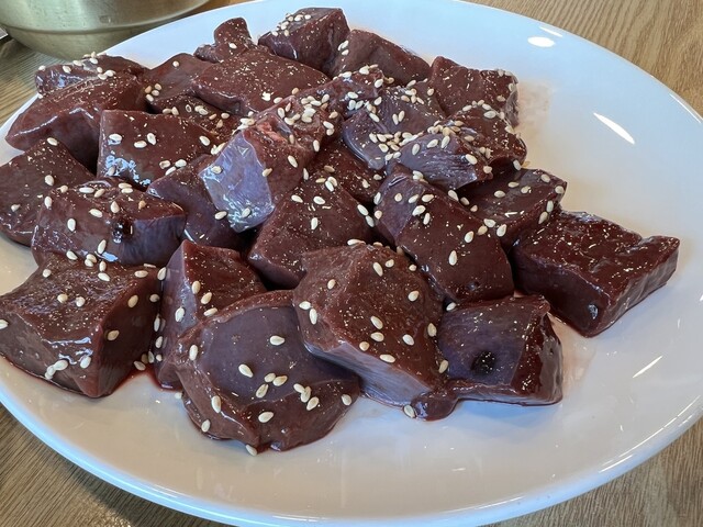 広蔵市場と言えば、有名なユッケの店がある。昔行った時は誰も並んでなかったのに、今は移転して外に20人近くの行列。なんだこれ?と思って市場内に居る日本語ガイドに穴場を聞くと、ここを教えてくれた。丁度有名店のから見て反対側の市場入り口近く。金額は一緒なので、後は味。いやぁ、普通に旨いじゃないか。しかもレバ刺しとセンマイのハーフ&ハーフも言えばレバ刺しオンリーにしてくれたし。地元客も結構来てた。まぁ4号店だし人気店んだろうな。帰りにおばちゃんと片言の韓国語で話してたら、おばちゃんの言葉全く分からず・・・あれぇ、日本人?発音が流暢だから、てっきり韓国人か韓国語べらべらかと思ったと、日本語で言われた。ちょっと韓国語に自信もついたお店だった。また行こう。でも混んでないと良いなぁ。。
