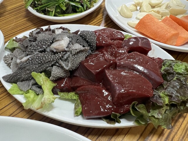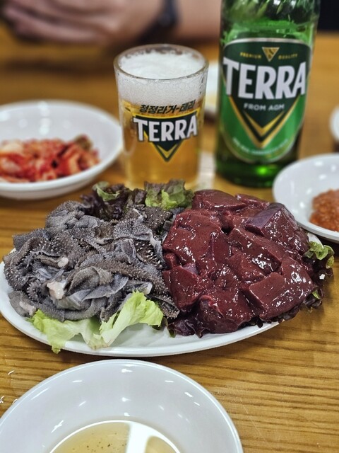 • 백제정육점 - レバ刺し&センマイ刺し盛り